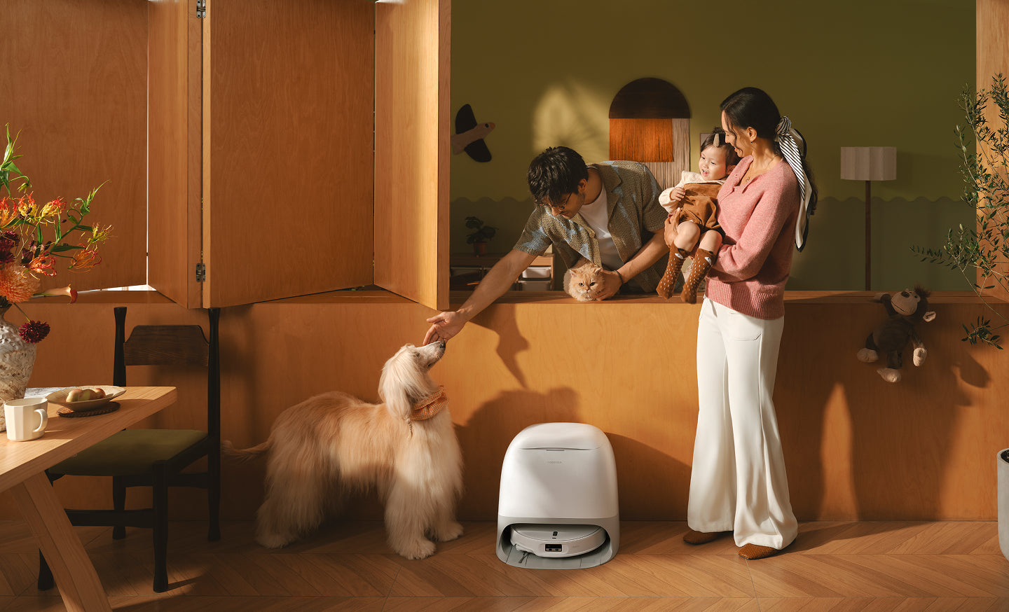 Robot potrafi automatycznie szukać zwierząt, odnajdując miejsca, gdzie są ukryte. Możesz również sprawdzić lokalizację i stan swojego zwierzaka, gdy jesteś poza domem.