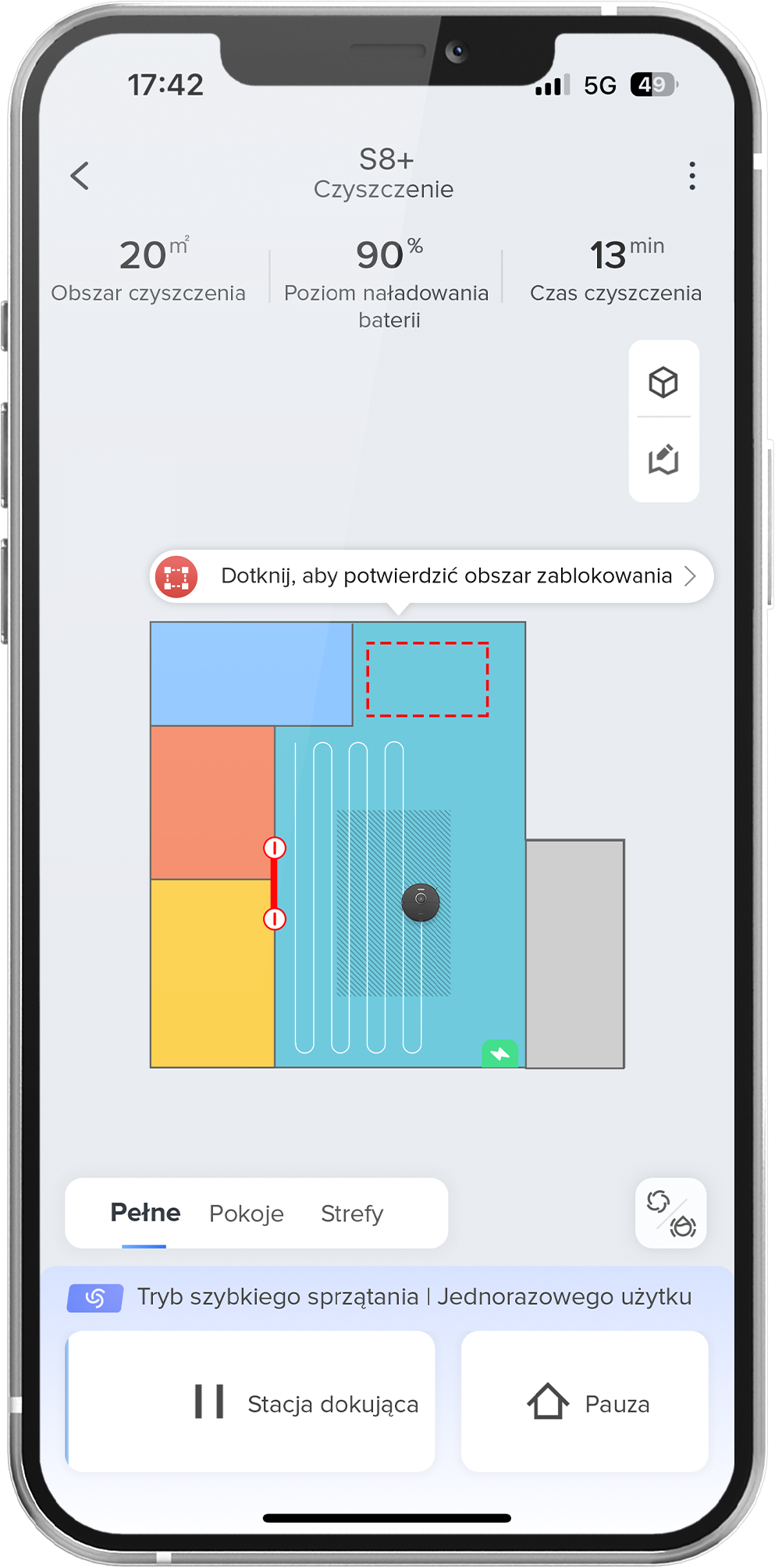 8. Stwierdzono podczas testów wewnętrznych przeprowadzonych przez producenta, model S8 może dostrzec i ominąć przedmioty o szerokości 5 cm i wysokości 3 cm. Dokładność rozpoznawania może zmieniać się w zależności od czynników środowiskowych.