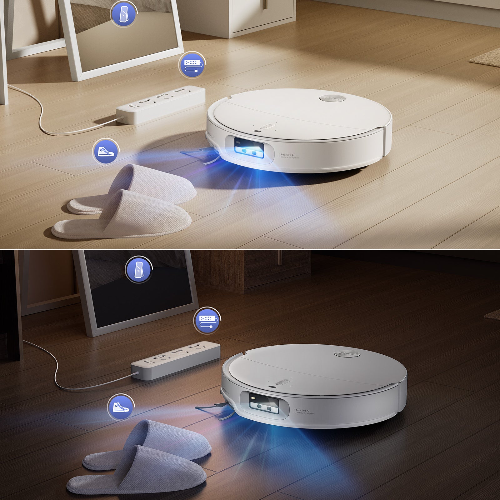 Światło ustrukturyzowane i kamera RGB pozwalają robotowi na inteligentne wykrywanie i omijanie 108 typów obiektów12, co przekłada się na bezproblemową nawigację wokół przeszkód w miejscach dobrze oświetlonych i ciemnych – bez konieczności wcześniejszego sprzątania podłogi.