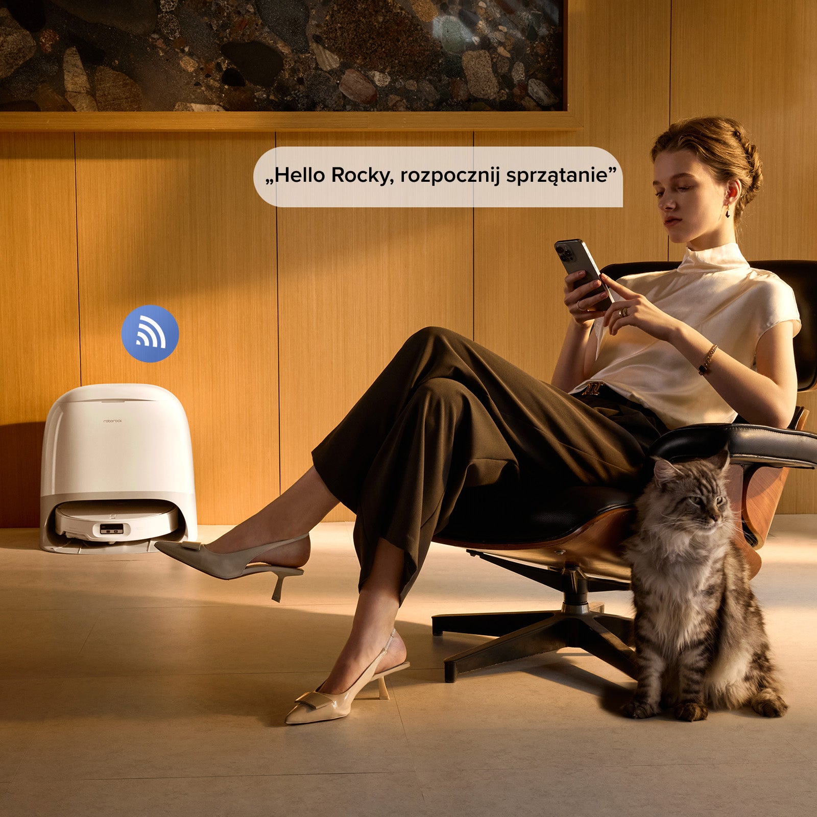 Wystarczy powiedzieć „Hello Rocky”, aby włączyć sprzątanie lub wyregulować ustawienia. Inteligentny asystent głosowy jest zawsze gotowy, by pomóc – nawet bez połączenia z Internetem.
