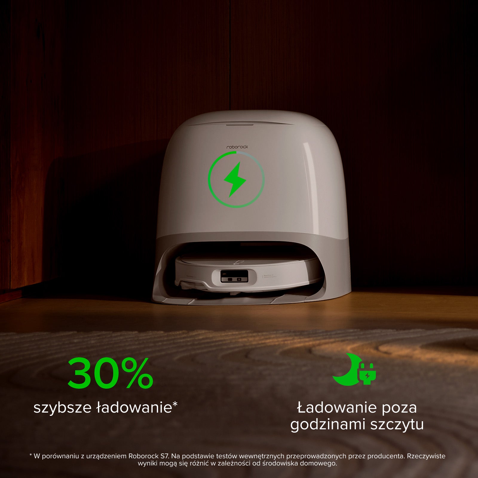 Ładowanie o 30% szybsze1 niż dotychczas pozwala szybko wznowić sprzątanie, a ładując odkurzacz poza godzinami szczytu, możesz maksymalnie wykorzystać niskie ceny energii.