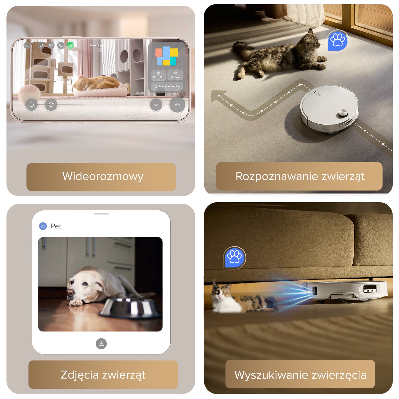 Podczas sprzątania robi urocze zdjęcia Twoich czworonożnych przyjaciół, które możesz z łatwością pobrać.